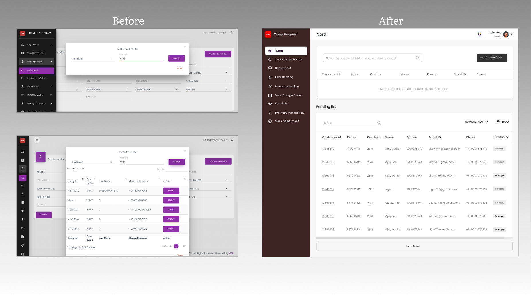It was pandemic, and the travel sector witnessed a significant downturn. We seized the opportunity to undertake a redesign of the forex portal of M2P, recognising that there would be minimal active usage during this period. Developed a well-defined strategy, with a phased approach to minimize disruptions and ensure smooth transition for the existing users.